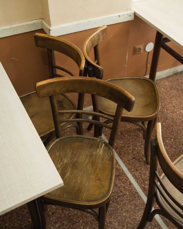 Ένα στενόμακρο δωμάτιο με 5-6 τραπέζια είναι το μαγαζί. Σε μια άκρη το οικιακό ψυγείο, στη μέση η ξυλόσομπα, στους τοίχους καρδαρισμένες αφίσες, ένας χάρτης του Πόντου. Ο ίδιος σε υποδέχεται, μαγειρεύει, σερβίρει. Όταν βρει ευκαιρία, το μεσημέρι, θα κάτσει σε μια άκρη να φάει και αυτός. «Τριάντα χρόνια είναι το μαγαζί. Μπήκα νέος και βγήκα…», λέει ο ίδιος που ήρθε στην Ελλάδα το 1990 από το Σοχούμι και το 1996 άνοιξε τον καφενέ του, σερβίροντας αποκλειστικά καφέ για τους ανθρώπους της γειτονιάς.