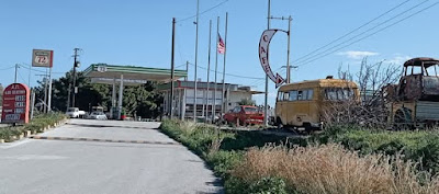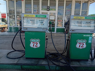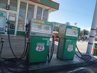Έχει απ’ όλα, παλιές αντλίες, νωχελικό υπάλληλο, σκουριασμένα αυτοκίνητα και ντάνες παλιά λάστιχα Pirelli, και άλλα πολλά… Ένα μαγγιώρικο πρατήριο της ελληνικής “Δύσης” του Μωριά. Στέκι, το χαρακτηριστικό του παλιομοδίτικο καφέ, δικυκλιστών κάθε είδους, χαρλεάδων και τσοπεράδων, μηχανόβιων και περιηγητών του Σαββατοκύριακου, εντουράδων και βεσπάκηδων… του σιναφιού μας, όλοι.
