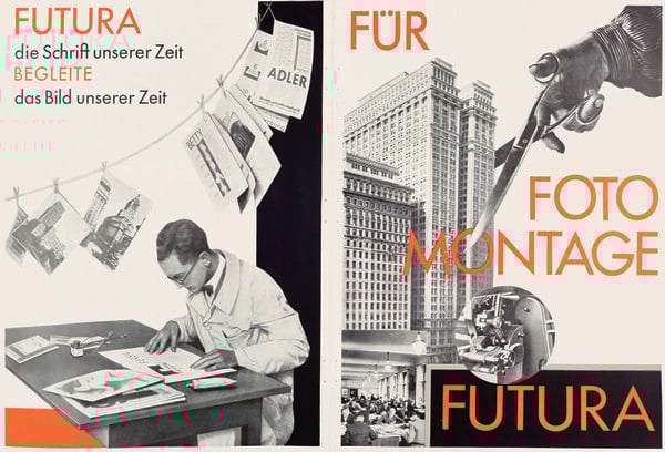 Heinrich Jost « Für Fotomontage Futura» [Pour le photomontage : Futura] dans la revue Gebrauchsgraphik vol. 6, n°3, mars 1929 Annonce presse en 4 pages encartées © Archiv der Massenpresse P. Rössler