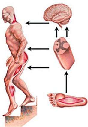 Στην διπλανή εικόνα γίνεται κατανοητή η συνεργασία ιδιοϋποδοχέα- νωτιαίου μυελού- εγκεφάλου με αποτέλεσμα μια κινητική απάντηση. Οι υποδοχείς του πέλματος λαμβάνουν το ερέθισμα (ασταθές έδαφος- σκαλοπάτι). Η πληροφορία (κεντρομόλος) μεταβιβάζεται στο νωτιαίο μυελό και από εκεί στο κέντρο ελέγχου (εγκέφαλος). Από εκεί αποστέλλεται η φυγόκεντρος απάντηση πίσω , η οποία εκφράζεται με κίνηση (την κάθοδο του σκαλοπατιού χωρίς την απώλεια ισορροπίας).